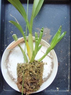 花無しなど古株11本、バルブ最長7cm最広2.8cm最厚0.7cm 子株5本、草丈最高18cm、バルブ最長7cm最広2cm最厚0.7cm バルブは小さいです |