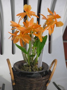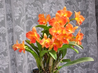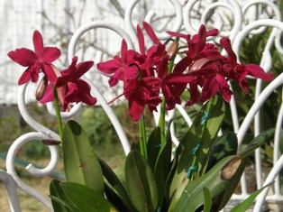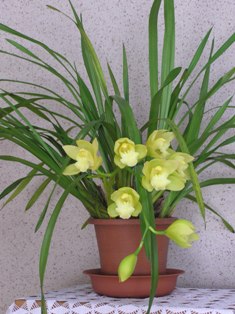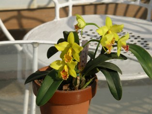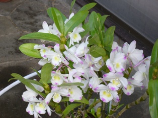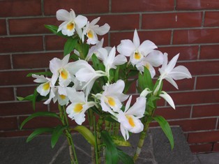 花期 春・花命 1.5ケ月・ ろう質の花で開花当初は 黄色いリップに深緑の紋が入る.