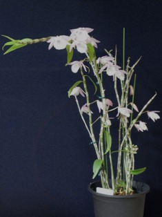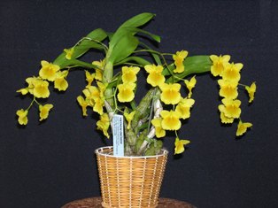 Den. trigonopus (トリゴノプス自生地 インド、ミャンマー、タイ、標高 : 300-1500m。 特徴:草丈15〜20cm。ステムは紡錘状、花は鮮黄色のロウ質、芳香性があり 花期は長い。