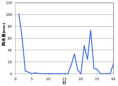 週1回の水やりとすれば、大半は雨で足りるため、水やりは上旬の1回だけで良い。10月も同様。
