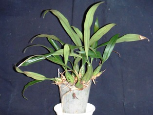 上旬春芽#4草丈24cmバルブ5.3x1.7x1.5cm 夏芽#21 5cm、#5(開花株#3の孫) 4cm 夏新芽#11 1cm分岐・群生株化 | 1 | 5 |