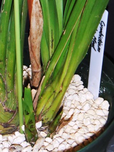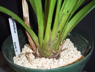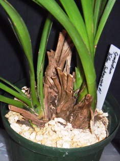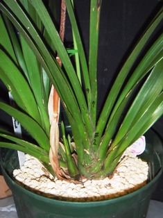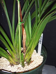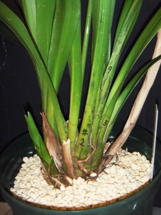親株が草丈80cm余り、バルブ幅4cm余りの巨大株なので、株分け・植替えしても良く育っています。