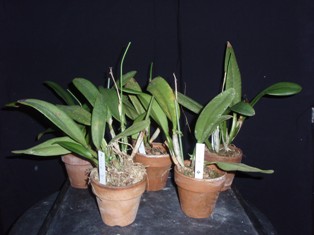 出荷まで、素焼き鉢小鉢ミズゴケ植えのまま促成栽培された苗は、一方はミズゴケが古くなり中が根腐れしていました