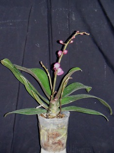 花茎を残しておいたミズゴケ植えの中型チャン・シン・パール、枝が出て蕾が大きくなり始め