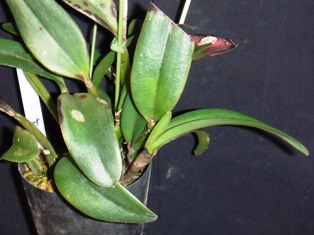 株#1、当初は6本立ち、重量17gのミニ苗、開花株でバルブ5cm葉7cm程度