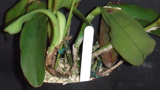 新芽葉のみ、bk遅芽丈1.5x0.4、中:分け株#12-2丈9バルブ内3.5x0.6、右:分け株#12-3新芽丈6.5、根露出