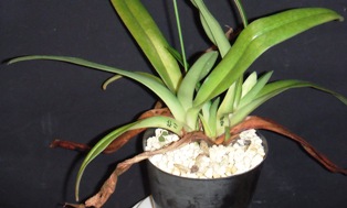 入手後2年近くかかって、そのときすでに葉が5枚で草丈が9cm合った脇芽からようやくシースが出ました。2年の間に葉が4枚出ました。