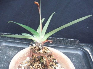 子株は冬のシースと前後して出たので、夏咲なら次の開花まで1年、そうでなければ2年かかることになります。