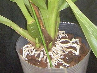 根の虫害とは、余り馴染みがありませんが、「新根の先をナメクジに食べられると1年花が咲き損なう」とも言われます。カトレヤやオンシジウムは、新しい脇芽が地上の少し高い所から出て、新根がその根元から出て空中にある時期があります。その時に柔らかい新根の先をナメクジに食われてしまうと、新芽の生長が悪くなり、花が着かないことがあります。