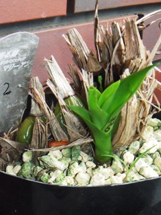 芽の出る時期がまちまちで、バルブの両側から出たりしています。