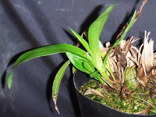 草丈の伸びは止まっていますが、バルブは生長を続けています。親株の薄葉を落とさないようにする必要がありそうです。